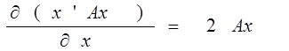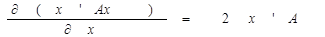 Квадратна матриця Квадратна матриця Визначення рангу матриці Якщо у будь-якій матриці виділити r довільних столбців та r довільних рядків, то з елементів матриці, які містяться на перетині цих рядків і стовпців, можна скласти визначник r-го порядку. Його називають мінором r-го порядку. Рангом матриці називають число, яке дорівнює найвищому порядку її мінора, відмінного від нуля (rang [A]). Диференціальне обчислювання в матричній формі Розглянемо деякі випадкидиференціального обчислювання в матричній формі, які використовуються в економетриці. 1.Похідна від скалярного добутку векторів (