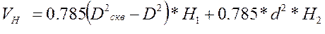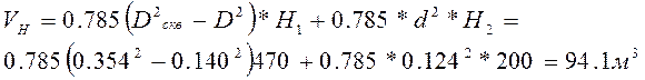где Dскв – диаметр скважины, м; в = 0,140 м – наружный диаметр бурильных труб, м; Н1 – высота подъема нефти в затрубном пространстве. Нефть поднимают на 50 – 100 м выше места прихвата; Н2 – высота столба нефти в трубах, необходимая для периодического (через 1-2 ч) подкачевания нефти в затрубное пространство. Принимая Н2 = 200 м; в - внутренний диаметр бурильных труб, м;