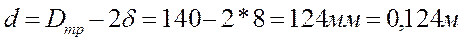 где E = 2,1*104 кН/см2 – модуль упругости стали бурильных труб; F = 38,7 см2 – площадь поперечного сечения тела 140-мм бурильных труб с δ = 8 мм; Определяем внутренний диаметр бурильных труб