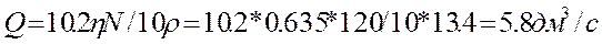 где: η – кпд. насоса агрегата ЦА-320, равный 0,635. N – мощность двигателя