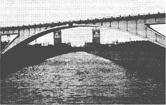 Среди них особое место занимает железнодорожный мост Калининской (теперь Рижской) железной дороги. Работы на 30-метровой высоте велись и днем и ночью, они были закончены за один год — в срок, исключительно короткий даже по нынешним темпам. Этот железнодорожный мост — наиболее интересный по конструкции из всех, построенных над каналом Москва-Волга. Он представляет собой трехшарнирную арку со 120-метровым пролетом, превышавшим длину пролетов всех железнодорожных мостов в Советском Союзе и уступавшим лишь 172-метровому мосту через реку Эсла в Испании. Он являлся в 1930-х гг. последним словом инженерной техники мирового мостостроения благодаря оригинальности его конструкции и примененному в проекте чрезвычайно высокому «коэффициенту смелости». Величина «коэффициента смелости» определяется соотношением пологости свода арочного сооружения и длины его пролета: чем положе кривая арки, тем больше напряжение, воспринимаемый устоями распор. Для крупнейших мостовых сооружений того времени это соотношение составляло от 1 к 2,4 до 1 к 4,8. Длина арочного пролета моста Калининской железной дороги превышает его пологость в 5,86 раза, он стал первым в мире по «коэффициенту смелости». Создание такого сооружения требовало от работы проектировщика и строителя чрезвычайной технической тщательности и четкости. Совершенно необычна и конструкция моста, установленного на относительно мягком и зыбком грунте с помощью мощных бетонных опор, основанных на деревянных сваях. Автором проекта был талантливый инженер Александр Семенович Бачелис, на счету которого много известных сооружений. В 1927 г. Александр Семенович окончил в Киевском политехническом институте факультет инженеров путей сообщения по специальности мостов. Диплом на тему: «Проект шоссейного моста через Терек у города Моздока», выполненный им под руководством академика Е.О. Патона, квалификационная комиссия признала отличным. С апреля 1929 по 1935 г. он работал в Москве в тресте «Трансстрой», занимая последовательно должности инженера, старшего инженера, руководителя сектора. О своей работе в эти годы А.С. Бачелис коротко говорит в автобиографии: «В период моей работы в Трансстрое мною был составлен ряд проектов больших мостов, осуществленных постройкой на крупных стройках Союза: арочный железобетонный мост через реку Любовку для Бобриковского химкомбината, мосты и эстакады для Магнитостроя, Тагилстроя, Кузнецкстроя, Уралвагонстроя, Азовстали, городские мосты через реку Уводь в Иваново-Вознесенске, для канала Москва-Волга и других»[7] . В августе 1935 г. он был откомандирован на строительство канала Москва-Волга для руководства работами по сооружению спроектированного им моста. В то время еще велись земляные работы по подготовке профиля для оснований будущего шлюза и моста. И в дальнейшем строительство этих двух сооружений шло одновременно. К концу сентября, когда была уложена бетонная подошва шлюза, еще продолжались работы по забивке в грунт 1984 деревянных свай для упоров моста. В январе 1936 г. были завершены бетонные коробка шлюза и массивные упоры моста, к концу апреля возведены деревянные леса, опалубка и кружала для бетонных опор и арки, а в мае начались работы по установке железобетонных арочных сооружений. Сдача объекта намечалась по плану к 1 сентября 1936 г., но уже 31 июля комиссия На