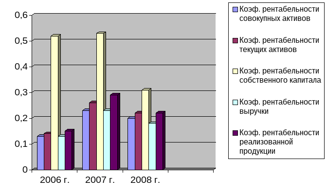 На анализируемом предприятии за 2006-2008 гг. сокращена продолжительность оборота мобильных средств с 326 дн. до 302 дн., а также денежных средств с 18 до 4 дн. В то же время увеличился срок оборота материальных средств с 116 дн. В 2006 г. до 172 дн. в 2008 г. Увеличение оборачиваемости средств в расчетах свидетельствует о более длительном периоде погашения долгов. Это вызывает необходимость в разработке предложений по управлению оборотными средствами ООО «Ель». 2.5. Анализ прибыли и рентабельности К обобщающим показателям оценки эффективности использования ресурсов предприятия и динамичности его развития относятся показатели результативности финансово-хозяйственной деятельности - прибыльности и рентабельности. При анализе рентабельности используются следующие основные показатели, используемые в странах с рыночной экономикой для характеристики рентабельности вложений в деятельность того или иного вида: рентабельность авансированного капитала и рентабельность собственного капитала. Экономическая интерпретация этих показателей очевидна - сколько рублей прибыли приходится на один рубль авансированного (собственного) капитала. При расчете можно использовать либо общую прибыль отчетного периода, либо чистую прибыль. Таблица 15 - Коэффициенты рентабельности