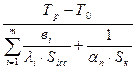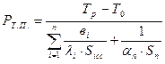 где n – число слоев футеровки подины; λi – теплопроводность слоя футеровки при его средней температуре Т i ср , Вт/(м·К); вi – толщина i – того слоя футеровки, м; λп – коэффициент теплоотдачи естественной конвекции с наружной поверхности подины, Вт/(м2 ·К); Sn – площадь наружной поверхности подины, м2 ; Si ср – площадь среднего сечения i-го слоя футеровки подины, которая определяется как средняя геометрическая из значений внутренней и внешней поверхности слоя: Si