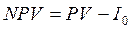 где I0 – сумма первоначальных затрат, т.е. сумма инвестиций на начало проекта; PV – современная стоимость денежного потока на протяжении экономической жизни проекта PV можно определить по формуле: