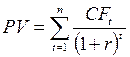 где r– норма дисконта; n– число периодов реализации проекта; CF – чистый поток платежей в периоде t. Подставив формулу вычисления PV в формулу 3, получим [36]: