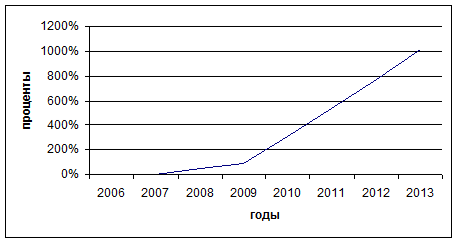 Рис. 8. Изменение коэффициента текущей ликвидности Текущая ликвидность также резко растет, что характеризует предлагаемый проект как очень выгодный. Как видим, рентабельность собственного капитала растет зигзагообразно, однако общая тенденция к росту рентабельности четко прослеживается. Рентабельность активов по чистой прибыли вначале увеличивается за счет значительного увеличения активов. Затем рентабельность начинает плавно снижаться к 2008 г., что является достаточно высоким показателем. Произведем расчет показателей финансовой устойчивости предприятия (табл. 35) В таблице 35 представлены показатели финансовой устойчивости предприятия. Таблица 35. Показатели финансовой устойчивости предприятия