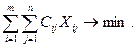 В задаче требуется разработать план перевозок, обеспечивающий с наименьшими транспортными затратами запросы всех потребителей при условии, что предложения и спрос будут сбалансированы. Пусть объем перевозок из пункта А i в пункт Вj ( от i – го поставщика к j – му потребителю) будет равен Х ij . Тогда целевая функция будет равна Z= В то же время должны выполняться условия (ограничения):
