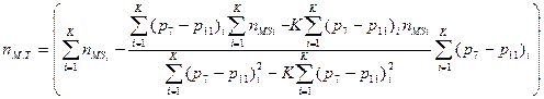 Значения теоретической частоты вращения вала гидромотора nM . T при р7 -р11 =0 найдем по графику экспериментальной зависимости nMS =n(p). При значительном разбросе экспериментальных значений nMS величину nM . T определяют по методу наименьших квадратов: