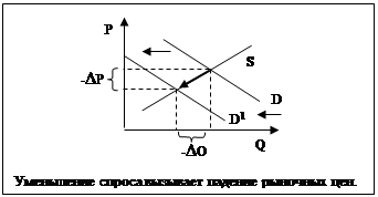 (i = 1,2,…,k); T - вкусы и предпочтения; P1 ,…,Pk - цены всех товаров, включая i-тый; I – денежный доход.Закон спроса – при снижении цены объем спроса растет (обратная зависимость между ценой и величиной спроса товара в течении определенного периода). В соответствии с законом спроса существует обратная зависимость между ценой товара и объемом спроса, выражаемая графически в виде кривой спроса, имеющей отрицательный наклон.
