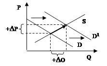 - Спрос и рыночная цена равновесия изменяются в одном направлении. Зависимость между изменениями спроса и вытекающими отсюда изменениями в равновесной цене и равновесном объеме является прямой.