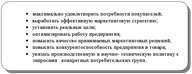 Рекомендации по выбору стратегии в матрице Ансоффа следующие: 1. Стратегия совершенствования деятельности (проникновения на рынок). При выборе данной стратегии компании рекомендуется обратить внимание на мероприятия маркетинга для имеющихся товаров на существующих рынках: провести изучение целевого рынка предприятия, разработать мероприятия по продвижению продукции и увеличению эффективности деятельности на существующем рынке. 2. Товарная экспансия (Развитие продукта) – стратегия разработки новых или совершенствования существующих товаров с целью увеличения продаж. Компания может осуществлять такую стратегию на уже известном рынке, отыскивая и заполняя рыночные ниши. Доход в данном случае обеспечивается за счет сохранения доли на рынке в будущем. Такая стратегия наиболее предпочтительна с точки зрения минимизации риска, поскольку компания действует на знакомом рынке. 3. Стратегия развития рынка. Данная стратегия направлена на поиск нового рынка или нового сегмента рынка для уже освоенных товаров. Доход обеспечивается благодаря расширению рынка сбыта в пределах географического региона, так и вне его. Такая стратегия связана со значительными затратами и более рискованна, чем обе предыдущие, но более доходна. Однако выйти напрямую на новые географические рынки трудно, так как они заняты другими компаниями. 4. Стратегия диверсификации предполагает разработку новых видов продукции одновременно с освоением новых рынков. При этом товары могут быть новыми для всех компаний, работающих на целевом рынке или только для данного хозяйствующего субъекта. Такая стратегия обеспечивает прибыль, стабильность и устойчивость компании в отдаленном будущем, но она является наиболее рискованной и дорогостоящей. Достоинствами использования планирования по матрице И. Ансоффа являются наглядность и простота применения. Недостатки использования планирования по матрице И. Ансоффа - односторонняя ориентация на рост и ограничения в разрезе двух характеристик (продукт - рынок). 35. ценовая политика. Факторы, влияющие на формирование цен Политика цен предприятия заключается в определении и поддержании оптимальных уровней, структуры цен, взаимосвязей цен на товары в рамках ассортимента предприятия и конкретного рынка, в своевременном изменении цен по товарам и рынкам с целью достижения максимально возможного успеха в конкретной рыночной ситуации. Факторы, влияющие на политику цен предприятия. Внутренние факторы: · Цели организации и маркетинга; · Стратегии по отношению к отдельным элементам комплекса маркетинга; · Издержки; · Организация ценообразования. Внешние факторы: · Тип риска; · Оценка соотношения между ценой и ценность продукта, осуществляемую потребителем; · Конкуренция; · Экономическая ситуация в стране, уровень инфляции; · Государственное регулирование; · Возможная реакция посредников; · Тип рынка. Перед назначением окончательной цены необходимо учесть влияние ряда дополнительных факторов: · Психология восприятия цены; · Стадия жизненного цикла; · Необходимость прочного внедрения на рынок; · Возможность принятия на себя расходов по доставке; · Возможность использования скидок; · Государственное регулирование. 36. функции цены 1. Измерительная. Цена обслуживает оборот по реализации товаров и тем самым обслуживает 