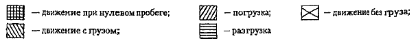 t р — время разгрузки автомобиля, ч; t п — время погрузки автомобиля, ч; tx — время движения автомобиля без груза, ч; 1ег — расстояние груженой ездки, км; lx - расстояние ездки автомобиля без груза, км; Qсут. — суточный объем перевозки по массе, т; Wсут. — суточный грузооборот, ткм; ne — количество ездок автомобиля за время работы на маршруте,