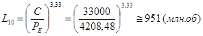 5) Базовая долговечность предварительно выбранного подшипника в миллионах оборотов: