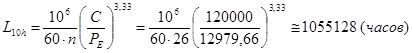 6) Базовая долговечность предварительно выбранного подшипника в часах: