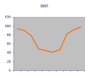 Рис. 2.1. Вектори розвитку трансформаційної економіки [4] Все це вищеприведене є фундаментом для встановлення в країні так званого мутнатного капіталізму, характерними рисами якого є: 1) збереження та укріплення мутацій соціалізму: бюрократія, що перетворюється у волюнтаризм з одночасною диффузією інститутів, блат – широкомасштабну корупцію, містечковість – піздньофеодальний сепаратизм, тіньовий сектор – кримінальні форми організації. 2) глобальна гегемонія корпоративного капіталу, що намагається підпорядкувати собі потужні у минулому країни. У першу чергу через регрес останніх – розвалення постіндустріального та розвиненого індустріального секторів, розвалу великих науково-виробничих об’єднань. 3) відновлення добуржуазних форм. Тепер хотілося б охарактеризувати етапи ти типи трансформації, проілюстрував зведеними діаграмами. (див. Рис. 2.2) . У випадку трансформації ми можемо виділити наступні етапи: 1. Підготовчий – саморозклад старої системи до повної соціально-політичної та економічної кризи. (СРСР – 1985-1991, Польща 1980-1989, Венгрія – 1968-1988). 2. Етап входу у трансформаційну незбалансованість, для якого характерні активні інституціональні зміни та пов’язаний з цим хронічний дисбаланс економіки при зміні об’єктивних критерієв економічної ефективності. Період зростання – це СРСР 20-х років та КНР, В’єтнам - 80-90х. Занепад – Росія та країни соцтабору на початку 90-х. 3.Етап виходу зі 2. Характерно завершення створення інституціональних засад для нової системи виробничих відносин. Може буде досить тривалим і починатися рецесією (Польща після 1993-94) або консервацією трансформаційного спаду (Росія після 1995-1996). 4.Етап завершення трансформації. При цьому наявним є збереження у глибині пережитків старої системи. Типізовані моделі переходу: Модель державно-ринкового реформування мутантного соціалізму. Перша тм найвдаліша з економічної точки зору (КНР, В’єтнам). Зміни обмежуються конкретними секторами, поступове відмирання старих економічних відносин, реформування. Державно-корпоративна модель буржуазної трансформації . Відмінность єдина – орієнтація на демонтаж. Характерно домінування локального монополістичного контроля в області координації ресурсів при збереженні мутацій старої системи. Ліберально-корпоративна модель буржуазної трансформації (шокова терапія). В області координації ресурсів ринкові механізми саморегуляції не подавлені контролем монополій, права власності відчеджені від трударів та концентруються у руках приватних ділків, майже не характерний державний патерналізм. В результаті об’єктивно можна виділити три основних типа макроекономічної дінаміки перехідних систем (див. Рис. 2.2) : 1. нелінійний спад (з перехідом, що запізнився, до росту – Росія, країни СНД) 2. «яма» (Польща, країни Центральної та Східної Європи) 3. нелінійний ріст (Китай, Вьєтнам) за наявності суттєвих особливостей для кожної країни
