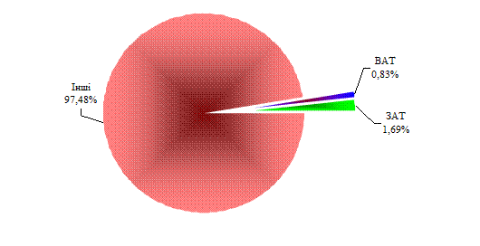 Рис. 3.4. Доля акціонерних товариств в загальній кількості підприємств України на жовтень 2009 року. [ 32 ] Існує пряма залежність між рівнем концентрації акціонерного капіталу та ефективністю діяльності підприємства, тобто чим вище рівень концентрації, тим ефективніше працює акціонерне товариство. Однак така залежність нерівномірна. З ростом концентрації вище 60% коефіцієнт кореляції знижується, що свідчить про зменшення залежності ефективності підприємства та росту концентрації акціонерного капіталу. Державі належить близько 18% акціонерного капіталу великих промислових підприємств. Вона є найменш ефективним власником. Чим вища частка держави в акціонерному капіталі підприємства, тим нижча ефективність його діяльності. Найбільш ефективним акціонером є іноземний інвестор, хоча йому належить менш 6% акціонерного капіталу української промисловості. ВАТ, які підконтрольні іноземним інвесторам, характеризуються висококонцентрованою структурою акціонерного капіталу. Розмір контрольного пакета для реальних іноземних інвесторів перевищує 75% акцій. Найбільша глибина приватизації характерна відкритим акціонерним товариствам таких галузей, як машинобудування, металургія, хімічна, харчова та легка промисловість. Ринки капіталу в Україні розвиваються непропорційно і неспроможні повністю задовольнити потреби національної економіки та бізнесу у доступних кредитах, інвестиційних ресурсах у тих обсягах, яких потребує реальний сектор економіки і соціальна інфраструктура країни. Реформування ринків капіталу незалежної України почалося з «Концепції функціонування та розвитку фондового ринку в Україні», що була прийнята постановою Верховної Ради України від 2 вересня 1995 року №322/95-ВР. Там було багато розумного, але деякі важливі положення так і не були реалізовані. Нині ринкам капіталу в Україні притаманні низька капіталізація, архаїчна інфраструктура ринку та тіньове ціноутворення на основні ресурси. Інші країни поряд з нами за ці 12-15 років трансформацій вже досягли дуже помітних результатів. Причиною невдач реформи ринків капіталу в Україні є хибна доктрина, що ринок може самостійно впоратися із необхідними перетвореннями. Питання концентрації і централізації ринків капіталу є ключовою проблемою, на вирішення якої спрямовано розроблений Державним агентством України з інвестицій та інновацій проект Концепції Державної цільової економічної програми модернізації ринків капіталу в Україні. Так, внаслідок впровадження програми модернізації національних ринків капіталу в Україні до 2010 року мають з’явитися консолідована біржова система, потужний центральний депозитарій цінних паперів, центральна розрахункова палата, а також інформаційна мережа, що об'єднає професійних учасників депозитарної системи та споживачів її послуг. Наприкінці спробуємо надати прогнози щодо перспектив розвитку корпоративних відносин в нашій державі. Великі корпорації, як правило, формують на основі поєднання кількох напрямків власну складну стратегію розвитку на певний період часу. Поєднання кількох напрямків розвитку одночасно необхідне в багатопрофільних підприємствах, щоб відобразити особливості видів виробничо-господарської діяльності, яку здійснюють різні підрозділи. Навіть компанії, які мають один вид основної діяльності