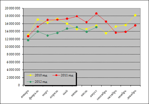 Сумма проведенных документов через КЦМР за 2007 - 2010 гг. (млн.тенге)