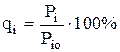 где qi - единичный параметрический показатель конкурентоспособности по i-му параметру; Pi - величина i-го параметра для анализируемой продукции; Piо - величина i-го параметра, при котором потребность удовлетворяется полностью; n - количество параметров. Анализ результатов оценки: - при оценке по нормативным параметрам единичный показатель может принимать только два значения - 1 или 0. Если анализируемая продукция соответствует обязательным нормам и стандартам, показатель равен 1, если параметр продукции в нормы и стандарты не укладывается, то показатель равен 0; - при оценке по техническим и экономическим параметрам единичный показатель может быть больше или равен единице, если базовые значения параметров установлены нормативно-технической документацией, специальными условиями, заказами, договорами; - если анализируемая продукция имеет параметр, значение которого превышает потребности покупателя, обусловленные характером использования (эксплуатации) этой продукции, социальными условиями, традициями, физиологическими особенностями, то указанное повышение не будет оцениваться потребителем как преимущество и единичный показатель по данному параметру не может иметь значения больше 100% и при расчетах должна использоваться минимальная из двух величин - 100% или фактически значение этого показателя. 2. Если за базу оценки принимается образец, расчет единичного показателя конкурентоспособности проводится по формуле: