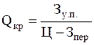 Пример: Ц=С+R*C/100 Для базисного варианта: 1,32415+15*1,32415/100=1,52277 Выручка=63000*1,52277=95934,6675 50088,55001-12021,252=38067,29801 2.6. Определение критического объёма производстваОдним из важных моментов в планировании деятельности предприятия является определение объёма производства продукции, при котором предприятие работает без прибыли, но и не в убыток, т.е. только возмещаются расходы на производство и реализацию продукции. Данный объём производства называется критическим или точкой безубыточности и рассчитывается по формуле