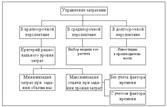 Рис 2 Управление затратами. Как уже было сказано выше, на короткой временной дистанции самый доступный способ управления издержками – их снижение. “Снижение затрат особенно эффективно в кризисные моменты - Говорит В. Кондратьев А в “мирное время” все зависит от выбора критерия оценки рациональности затрат. Если таковыми являются “минимизация затрат при заданном уровне продаж”, то речь пойдет о снижении издержек. А можно выбрать такой критерий, как “максимализация отдачи при фиксированном уровне затрат”. Это вовсе не означает, что затраты останутся на прежнем уровне: они могут расти, если такой рост повышает их эффективность. Просто менеджеры компаний должны заранее определить темпы роста тех или иных статей”.[5, с32] Хотя выбор критерия в основном “дело вкуса руководителя” (Это входит в процедуру стратегического планирования, где, как известно, большую роль играет личностный фактор, так называемая философия стратегии), необходимо иметь в виду, что увеличение отдачи при фиксированном уровне затрат требует применения более сложных инструментов, чем снижение издержек. Речь идет о таких методиках, как оптимизация складских запасов, поставки justintime (точно вовремя), различных методиках производственного планирования и управления ассортиментом (см главу 2). В среднесрочной перспективе для управления затратами используется механизмы мотивации: привязав оплату труда менеджеров к результатам работы подразделения, можно повысить эффективность этой работы. Если руководство фирмы заглядывает еще дальше, то, по словам А. Бочкарева, “на первый план выходит повышение производительности (см рис 2). Здесь необходимы инвестиции, а, значит, затраты максимальны”[5, с33] Любая компания, которая, например, покупает новые производственные линии или устанавливает информационную систему, следует этому принципу. Успех в данном случае базируется на умении заниматься финансовым анализом и бизнес - планированием. К сожалению, в России в настоящее время о производительности почти не вспоминают, а этот показатель не менее важен, чем, например, коэффициент текущей ликвидности или коэффициент обеспеченности оборотными средствами. 1.1. Факторы, влияющие на динамику затрат Любая деятельность, создающая потребительскую ценность, использует на входе сырье и материалы, человеческие ресурсы, технологию и информацию для выполнения своих функций. При этом на выходе получаются результаты в виде информации (например, данные о покупателях, параметры производительности, статистика брака), активов (например, запасы готовой продукции, дебиторская задолженность) и пассивов (например, кредиторская задолженность) предприятия (рис 3).