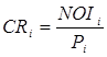где E - расходы, связанные с содержанием и эксплуатацией оцениваемого объекта, тыс. тенге. Расходы арендодателя по содержанию и эксплуатации объекта недвижимости включают: - расходы по управлению - 12% от ECFнп ; - расходы по налогу на имущество - 1% в год от остаточной стоимости (согласно Налоговому Кодексу РК); - расходы по страхованию - 0,1 % от стоимости нового строительства; - расходы по земельному налогу в год: а) на земли г. Усть-Каменогорска, занятые нежилыми строениями и сооружениями – 9,65 тенге./м2 б) на земли г. Усть-Каменогорска, занятые жилищным фондом, включая строения и сооружения при нем - 0,58 тенге/м2 . Студент должен самостоятельно выбрать величину земельного налога в соответствии с выбранным месторасположением оцениваемого объекта недвижимости. Ставки налога на земли других районов (областей) принимаются в соответствии с налоговым законодательством Республики Казахстан (см. Кодекс РК "О налогах и других обязательных платежах в бюджет" (Налоговый Кодекс). Поэтапный расчет чистого операционного дохода (NOIнп ) за год нужно представить в таблице 6. Для определения общей нормы (коэффициента) капитализации оцениваемого нежилого помещения необходимо рассчитать коэффициенты капитализации для объектов недвижимости, сопоставимых с оцениваемым, по следующей формуле: