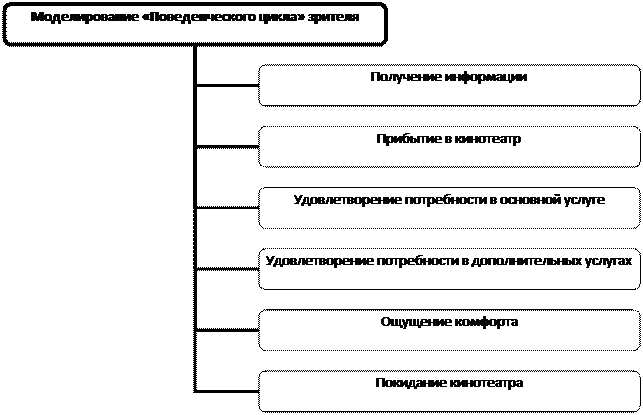 Рис 19. Кресла. Глава 2. Характеристика показателей качества услуги Основным направлением формирования конкурентных преимуществ является предоставление услуг более высокого качества по сравнению с конкурирующими фирмами. Ключевым является предоставление таких услуг, которые удовлетворяли бы и превосходили ожидания своих клиентов. Ожидания клиентов формируются на основе уже имеющегося у них опыта и информации, полученной по личным или по неличным каналам. На основе этого клиенты выбирают производителя услуг и после этого сравнивают свое представление о полученной услуге со своими ожиданиями. Если представление о предоставленной услуге не соответствует ожиданиям, клиенты теряют к сервисной фирме интерес, если же соответствует или превосходит их ожидания, они могут вновь обратиться к такому производителю услуг. Покупатель всегда стремится, чтобы цены на услуги соответствовали качеству. Удивительно, что клиент, оплачивая стоимость услуги, меньше внимания обращает на ее высокую цену, чем на цену приобретенного товара. Если клиент считает, что цена на услугу завышена, то он отказывается ее приобретать. Потеря клиента ведет, как правило, к большим потерям для предприятия. Исходя из этого, производитель должен как можно тщательнее разузнать потребности и ожидания своих клиентов. Но, к сожалению, о качестве услуги труднее судить и еще труднее его определить. Для того чтобы понять в какую сторону должен развиваться кинотеатр, в любом случае необходимо смоделировать так называемый «поведенческий цикл» кинозрителя (схема 1), то есть понять, как зритель будет пользоваться нашим кинотеатром, как он будет потреблять услуги, которые мы ему хотим предоставить.