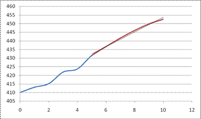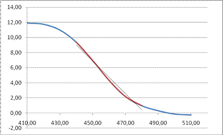Рис.2 -Зависимость выходного напряжения от частоты Uвых=f (fс). По линейному участку графика определили fср= 460 кГц. 2. Регулировочная характеристика автогенератора. Изменяя напряжение смещения на варикапе, фиксируем частоту генератора (таблица 2). Таблица 2: