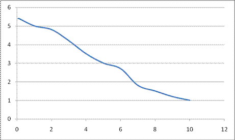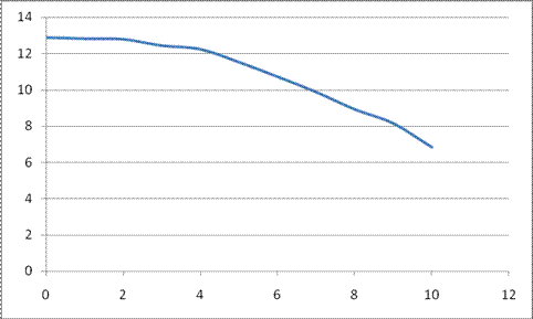 Рис.3 – Регулировочная характеристика fГЕН= f (UУПР) 3. Зависимость напряжения на выходе ЧД от напряжения смещения на варикапе автогенератора. Изменяя напряжение смещения на варикапе автогенератора от 0 до 10 вольт переменным резистором «СМЕЩЕНИЕ», фиксируем значения постоянного напряжения на выходе частотного детектора. Таблица 3: