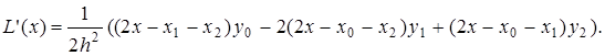 Пусть та же функция может быть аппроксимирована интерполяционным многочленом Лагранжа. Рассмотрим интерполяционный многочлен Лагранжа для случая трёх узлов интерполяции (n=2):