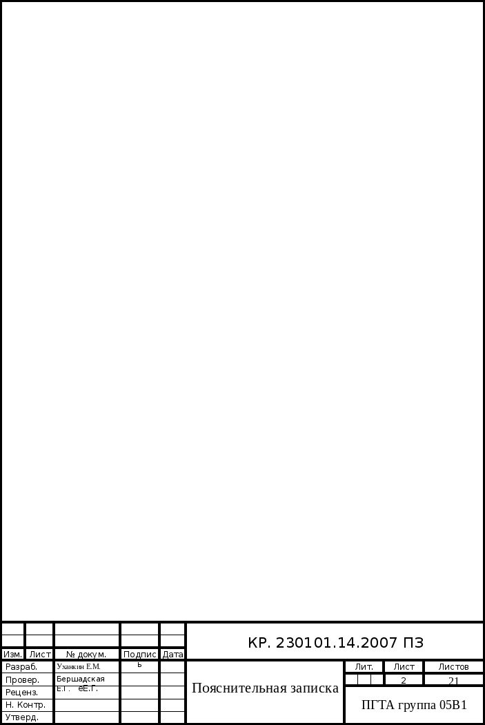 | Пензенская государственная технологическая академия И Кафедра ВМиС Пояснительная записка к курсовой работе по дисциплине: «Базы данных» на тему: «Разработка и проектирование базы данных» Выполнил: студент группы 05В1 Уханкин Е.М. Руководитель: Бершадская Е.Г. Работа сдана с оценкой _______________ Пенза 2007г. Содержание 1 ВВЕДЕНИЕ 4 2 ПРОЕКТИРОВАНИЕ КОНЦЕПТУАЛЬНОЙ МОДЕЛИ БАЗЫ ДАННЫХ 5 3 ПРОЕКТИРОВАНИЕ ЛОГИЧЕСКОЙ МОДЕЛИ БАЗЫ ДАННЫХ 7 4 ТИПЫ ДАННЫХ 11 5 РЕАЛИЗАЦИЯ БАЗЫ ДАННЫХ В СУБД MSACCESS 13 6 ЗАКЛЮЧЕНИЕ 20 7 СПИСОК ЛИТЕРАТУРЫ 21