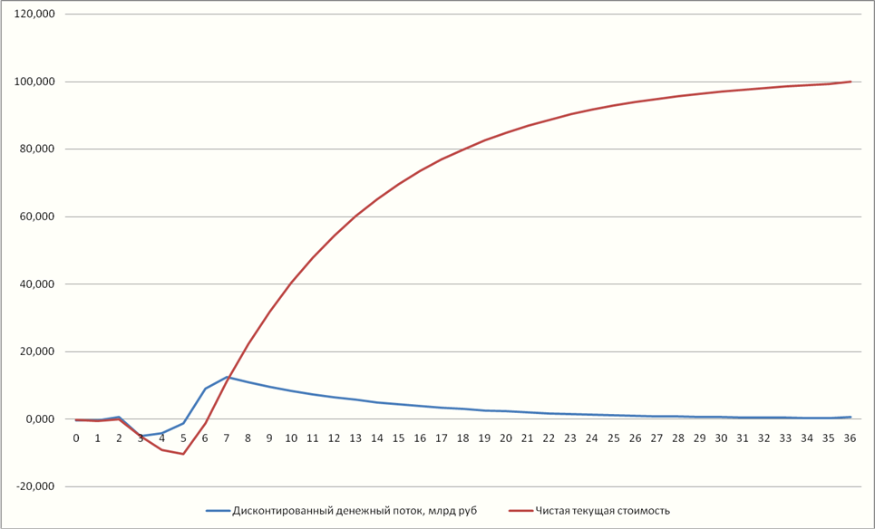 График динамики чистого дисконтированного дохода действующего НПЗ.