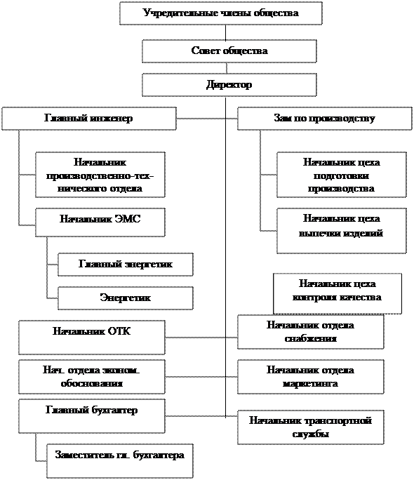 Рисунок 1- Структура управления предприятием На предприятии между работниками и администрацией заключается коллективный договор, в котором определена кадровая политика, оплата труда, социальная защита и т.д. На рисунке представлена структура управления (рис. 1). Данная структура является линейно-функциональной. Руководство высшего звена оставляет за собой большую часть полномочий, необходимых для принятия управленческих решений. Общее управление деятельностью предприятия осуществляет общее собрание учредителей общества. Текущее управление поручено директору в его подчинении находятся: зам по производству, главный инженер, начальник отдела снабжения, начальник ОТК, начальник отдела маркетинга, начальник отдела экономического обоснования, начальник транспортной службы, главный бухгалтер. В свою очередь каждый начальник возглавляет службу и имеет в подчинении руководителей низового звена или исполнителей. Такая структура, быстро решать возникающие проблемы, точнее доводить до подчиненных управленческие решения. К тому же с экономической точки зрения это менее затратная структура по сравнению с другими возможными. 2.3 Анализ управления финансовыми активами предприятияФинансовое состояние предприятия характеризуется составом и размещением средств, структурой их источников, скоростью оборота капитала, способностью предприятия погашать свои обязательства в срок и в полном объеме. Данный анализ необходим для оценки удовлетворительности структуры баланса, возможности отнесения предприятия к категории банкротов, а также для оценки возможности восстановления платежеспособности за определенный период. Результаты анализа во многом определяют целесообразность восстановительных процедур, их характер и направленность. Анализ будем проводить на основе данных годовой отчетности ООО «Волжский бисквит» за 2004, 2005 гг. Оценить общую эффективность производственно-финансовой деятельности предприятия позволяют следующие коэффициенты: Общая рентабельность капитала