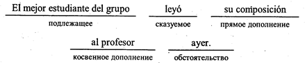 La carta es escrita роr Ernesto. La carta fu е escrita por Ernesto. ¡Que escriba Emesto la carta! ¡Si escribiese Emesto la carta! и т.д. б) Сложное глагольное сказуемое может быть выражено любой глагольной конструкцией (см. § 78), которая состоит из личной формы глагола и примыкающих к ней инфинитива (с предлогом или местоимением que или без них) или герундия. Наиболее характерными глаголами, способными образовывать сложное глагольное сказуемое, являются: 1) глаголы, обозначающие начало действия: comenzar, empezar, principiar. Им свойственна конструкция с предлогом а : Pronto comenzamos a estudiar la gramática francesa. 2) глаголы, обозначающие конец действия: terminar, acabar, cesar, dejar и др. Они образуют сложное сказуемое при участии предлога de : Acabo de traducir un artículo. 3) глаголы, выражающие продолжение действия: continuar, seguir и др. Они употребляются в сочетании с герундием: El toro sigue corriendo . Unos muchachos continuaron jugando . Этим не исчерпываются возможные виды сложных глагольных cказуемых. Подробнее о конструкциях, выступающих в названной функции, см. § 78. в) Именное сказуемое состоит из глагола-связки и именной части. В роли связки обычно выступает глагол ser . Кроме него в этой функции могут употребляться глаголы estar, parecer, sentirse, seguir, permanecer, quedar(se) и др.: Inés es maestra. El alumno parece distraído. В функции именной части употребляются: Существительное со всеми относящимися к нему словами: Juan es maestro . La salud es un tesoro inapreciable . Местоимение: Este es é l . El culpable fuiste tú . Прилагательное: Los chiquillos eran muy bulliciosos . Ella me pareció hermosa . Причастие: El discurso del delegado resultará grabado . El soldado сауó herido . Числительное: Nosotros estamos dos aquí . Luisa será la primera . Наречие: La revolución fue así . Mi familia está bien . Ин ф и н и т и в: Vivir es luchar . Su ocupación preferible era cantor . Придаточное предложение: Su conducta es lo que nos molesta. В зависимости от того, что характеризует именная часть сказуемого, подлежащее или прямое дополнение — испанские грамматисты делят именную часть на два вида: atributo sujetivo и atributo objetivo. Atributo sujetivo выражает какое-либо качество, свойственное подлежащему, и обычно состоит из прилагательного, причастия или существительного (включая все относящиеся к ним слова). Прилагательное и причастие в роли atributo sujetivo согласуются с подлежащим в роде и числе. Juan parece enfermo . Las mujeres estaban muy alarmadas . Pedro es estudiante del cuarto curso . Atributo objetivo называет какое-либо качество, присущее прямому дополнению. Оно также может быть выражено прилагательным, причастием или существительным со всеми относящимися к ним словами. Прилагательное и причастие в этом случае согласуются в роде и числе с прямым дополнением. La dejamos (a María) preocupada . La conferencia ha designado secretario a Enrique. 3. Дополнение Дополнения являются второстепенными членами предложения. Они называют лица, предметы и явления, на которые направлено действие, или которые возникли в результате действия. В испанском языке дополнения бывают двух видов: прямые и косвенные*. * Испанская академия считает, что в испанском языке кроме указанных двух видов дополнений имеются обстоятельственные дополнения. В настоящем пособии они рассматриваются самостоятельно как обстоятельства. а) Прямые дополнения называют объект, на который распространяется действие, передаваемое глаголом. Прямые дополнения могут употребляться только с переходными глаголами. Если прямые дополнения указывают на одушевленные существа или олицетворяемые понятия, то, как уже говорилось, они употребляются с предлогом а : El tractor ara la tierra . Estoy esperando a mi alumno . Y así... ensilló a Rocinante у enalbardó al jumento de su escudero. (CERVANTES) Предлог а перед оду