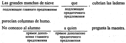 6. He следует забывать, что косвенная речь чаще всего не передает дословно чужого высказывания и не сохраняет все особенности его формы; она скорее пересказывает содержание чужой речи. Поэтому при переводе прямой речи в косвенную опускаются слова и выражения, передающие эмоциональные и экспрессивные оттенки, — междометия, вводные слова, восклицания и т.п. Опускаются также обращения и некоторые вводные предложения. 7. В современной разговорной речи, а также в языке прессы осбенно в некоторых странах Латинской Америки) наблюдаются отклонения от строгих правил согласования времен при переводе прямой речи в косвенную. Вот несколько примеров таких «нарушений»: El jefe de la delegación cubana indicó que el respeto a las personas en condiciones de detención... está plasmado con claridad meridiana en los textos legales у ha sido práctica diaria en su país... («Granma», 8.03.87) (El director) explicó que en la película sólo toma parte un actor profesional... у el restó son aficionados... Al abordar el tema de la cinematografía en Burkina Faso el director señaló que es un cine joven en lo que toca a la producción, pues desde 1973... hasta hoy se ha realizado sólo seis largometrajes. (Idem) Al profundizar en esa reflexión... agregó que el cauce será más vertiginoso cuanto más cantidad de agua lleve . (IDEM) Иногда подобное употребление перфекта (se ha realizado) рассматривают как реализацию его частного плюсквамперфектного значения. Не вдаваясь в теоретические рассуждения, отметим, что в контексте нормативной грамматики все выделенные индикативные употребления presente, futuro и perfecto являются отклонением от правил согласования. В настоящее время, видимо, целесообразно различать собственно-косвенную речь (estilo indirecto puro), или традиционную форму косвенной речи и «псевдокосвенную речь» (estilo pseudoindirecto), или независимую форму косвенной речи. В «псевдокосвенной речи» нарушаются традиционные правила согласования времен и прямая речь воспроизводится почти дословно. IV. Придаточные определительные предложения Придаточные определительные предложения относятся к членам главного предложения, выраженным существительным или местоимением, и указывают на их характеристику, признак и т.п. Они вводятся относительными местоимениями que , quien (quienes), el (la, los, las) que , el (la, los, las) cual (cuales), cuanto (-a, -os, -as), cuyo (-a, -os, -as) и др., и союзными словами cuando , donde и др., которые выполняют функции союзов и обычно являются одновременно членами придаточных предложений: Ambos viajeros contemplaban la húmeda llanura que se extendía a sus pies . La cantina donde hemos tomado refresco está situada en un sitio muy hermoso. Nos sentamos bajo un árbol cuyas ramas nos defendían del sol . Detrás se extendía un jardín, en el cual crecian muchas plantas . Существительное, характеризуемое придаточным определительным, может являться в главном предложении любым его членом: подлежащим — El hombre que medita antes de hablar no se arrepentirá de sus palabras; именной частью сказуемого — Mi vecino era un anciano cuyo nombre no recuerdo ; прямым дополнением — Recogí las naranjas que el viento había hecho caer de los árboles ; косвенным дополнением — Los obreros ayudaron a sus compañeros que trabajaban en la misma empresa ; косвенным дополнением к существительному — Rompí el brazo del sillón que estaba en mi cuarto ; обстоятельством — El camino nos llevó hasta una casita donde no había nadie ; приложением — Ivanov, un aviador que derribó cinco aviones durante la segunda guerra mundial , vive en nuestra casa. Однако это не значит, что относительные местоимения и наречия, которые замещают в придаточных предложениях существительные, входящие в состав главных, должны выполнять те же функции, что и эти существительные. Здесь могут быть как случаи совпадения, так и несоответствия. Сравните следующие примеры: