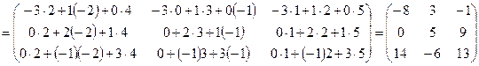 Первую строку оставляем без изменения. Умножаем элементы первой строки на (-3) и прибавляем к соответствующим элементам второй строки. Получим: