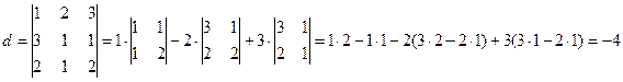 то есть решение сводится к вычислению четырех определителей третьего порядка. 2. Вычисляем определитель системы: