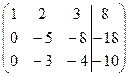 Умножаем элементы третьей строки на (-2) и прибавляем к соответствующим элементам второй строки.