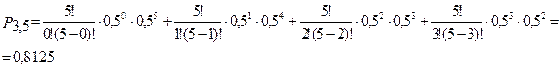 n=5, k=3, p=0,5, q=1-0,5=0,5 2. Вычисление вероятности искомого события: