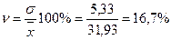 2. По итоговым данным табл.7, получаем: - среднюю производительность труда 3. Вычисляем характеристики вариации: - дисперсию - среднее квадратическое отклонение