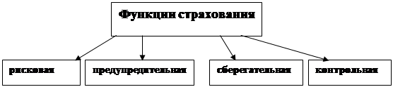 Рис. 1. Функции страхования · рисковая функция - перераспределение риска между участниками страхования; · предупредительная функция - использование части средств на уменьшение вероятности наступления страхового случая; · сберегательная функция - страхование используется для накопления денежных средств (страхование на дожитие); · контрольная функция - контроль за формированием и использованием страховых фондов. С трахование делится на несколько видов. (см. рис 2) Главным отличием этих видов друг от друга является то, на что направлен договор страхования. При страховании имущества физических и юридических лиц в качестве объекта страхования выступают, принадлежащие им некие материальные ценности. В отношении страхования жизни предметом страхования является здоровье, жизнь и трудоспособность застрахованного лица.