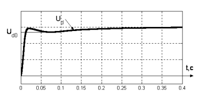 Рисунок 11 – Осциллограмма напряжения в звене постоянного тока Векторные диаграммы, иллюстрирующие работу АВ без учета активного сопротивления дросселей, представлены на рисунке 4.