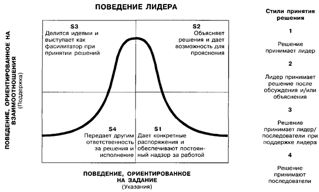 Рис. 1.6. Стили поведения лидера и принятия им решений по Херси-Бланшару Для правильного выбора стиля лидерства полезно представлять основные формы поведения лидера, характерные для каждого стиля. Ниже приведено краткое описание этих форм.