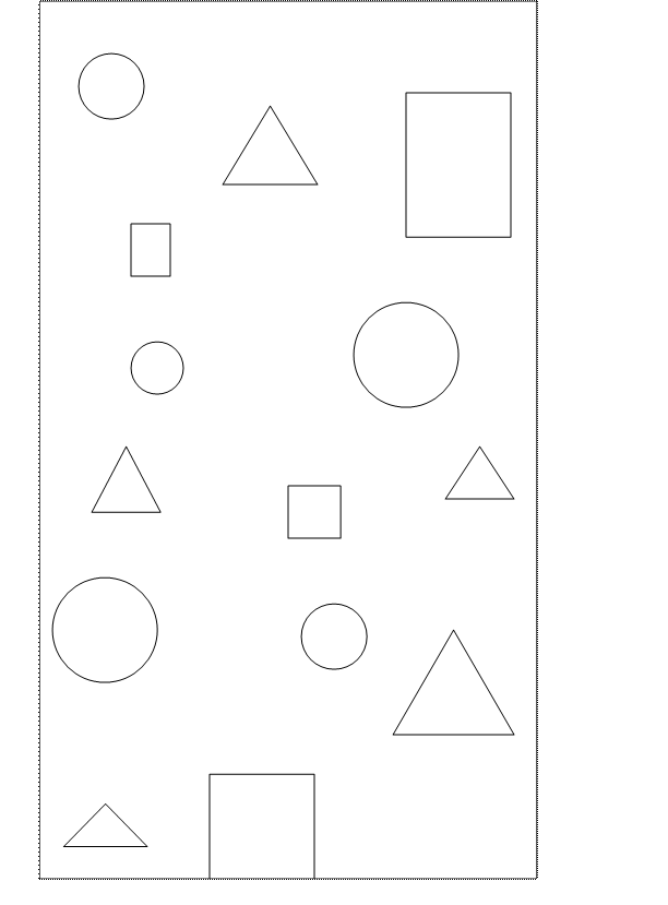 Задание №2. Материал: лист бумаги с нарисованными фигурками. Разделите изображенные фигуры по: А) цвету; Б) форме.