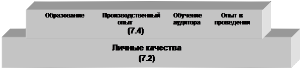 Рисунок 4 – Концепция компетентности 7.2 Личные качества Личные качества аудиторов должны позволять им действовать в соответствии с принципами проведения аудита. Аудитор должен быть: а) порядочным, справедливым, искренним, честным, выдержанным и рассудительным; b) открытым – воспринимать альтернативные идеи или точки зрения; c) дипломатичным – умеющим тактично взаимодействовать с людьми; d) наблюдательным – активно знакомиться с окружением и деятельностью; e) проницательным – интуитивно оценивать ситуации; f) гибким – быть готовым к различным ситуациям; g) упорным – настойчивым, ориентированным на достижение целей; h) решительным – своевременно принимать решения на основе логических соображений и анализа; i) самостоятельным – действовать и выполнять свои функции независимо, в то же время результативно сотрудничать с другими. 7.3 Знания и навыки 7.3.1 Общие знания и навыки аудиторов систем менеджмента качества и систем управления Аудиторы должны знать: а) принципы, процедуры и методы аудита, для того чтобы иметь возможность выбирать и применять их при проведении аудита надлежащим образом. Аудитор должен быть способен к выполнению следующих действий: – применению принципов, процедур и методов аудита; – результативному планированию организации работ; – проведению аудита в течение установленного срока; – установлению приоритетов и ориентации на существенных моментах; – сбору данных посредством результативного опроса, выслушивания, наблюдений и анализа документов, записей и данных; – пониманию соответствующих методов и результатов выборочного исследования для аудита; – проверке точности собранных данных; – подтверждению достаточности и приемлемости аудита для подкрепления наблюдений аудита и заключений по результатам аудита; – оценке факторов, влияющих на достоверность наблюдений и заключений по результатам аудита; – использованию рабочих документов для записи деятельности при аудите; – подготовке отчетов по аудиту; – сохранению конфиденциальности информации; – результативному обмену информацией посредством личных знаний языка или с помощью переводчика; b) системы менеджмента и ссылочные документы для применения критериев аудита. Знания и навыки в этой области должны охватывать: – применение систем менеджмента к различным организациям; – взаимодействие процессов системы менеджмента; – стандарты по системе менеджмента качества или системе экологического менеджмента, применяемые процедуры или другие документы по системам менеджмента, используемые в качестве – различия и приоритеты ссылочных документов; – применение ссылочных документов к различным ситуациям при аудите; – системы информации и методы санкционирования доступа, обеспечения безопасности, рассылки и управления документами, данными и записями; c) организационные моменты для понимания принципов работы проверяемой организации. Знания и навыки в этой области должны охватывать: – размеры, структуру, функции организации и взаимосвязи ее подразделений внутри нее; – общие бизнес-процессы и соответствующую терминологию; – культурные и социальные обычаи проверяемой организации; d) применяемые законы, технические регламенты и другие требования, относящиеся к применяемой организации. Для работы в этой области необходимые знания и навыки до