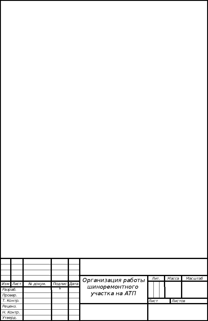1. Тема курсового проекта: Организация работы шиноремонтного участка на АТП. Исходные данные к проекту (эксплуатационно-технические данные): – модель (марка) автомобиля – ЛиАЗ-677; – количественный и качественный состав: