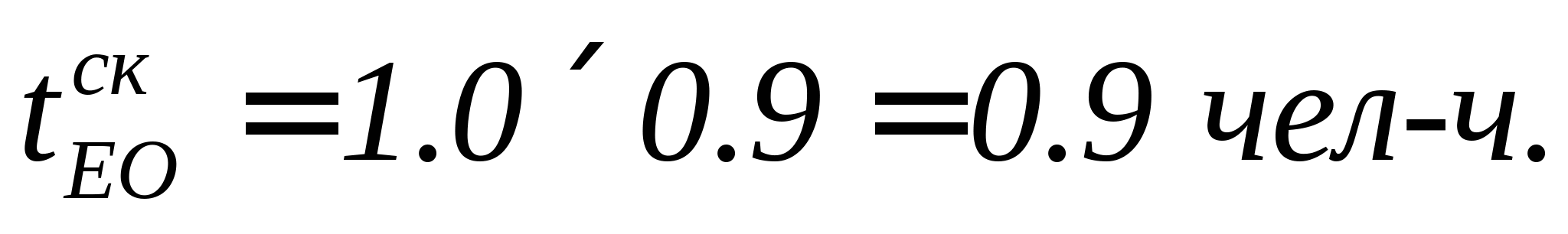 Годовая трудоемкость технических обслуживаний № 1 ТТО-1 2.2.3. Ежедневное обслуживание Скорректированная трудоемкость одного обслуживания tскЕО где tНЕО – норматив трудоемкости одного обслуживания, чел-ч [1, с.15, таб.2.2.]; Крез – результирующий коэффициент корректирования трудоемкости ТО [1, с. 28, п. 2.25.2].