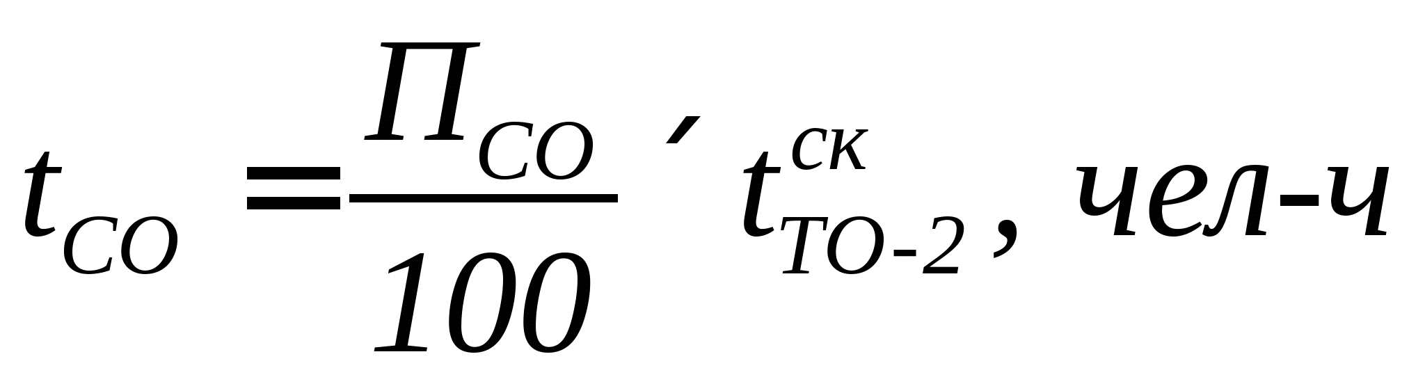 Годовая трудоемкость ежедневных обслуживаний ТЕО 2.2.4. Сезонное обслуживание Трудоемкость одного обслуживания tСО где ПСО – норматив трудоемкости сезонного обслуживания, % [1, с. 14. п. 2.11.2].