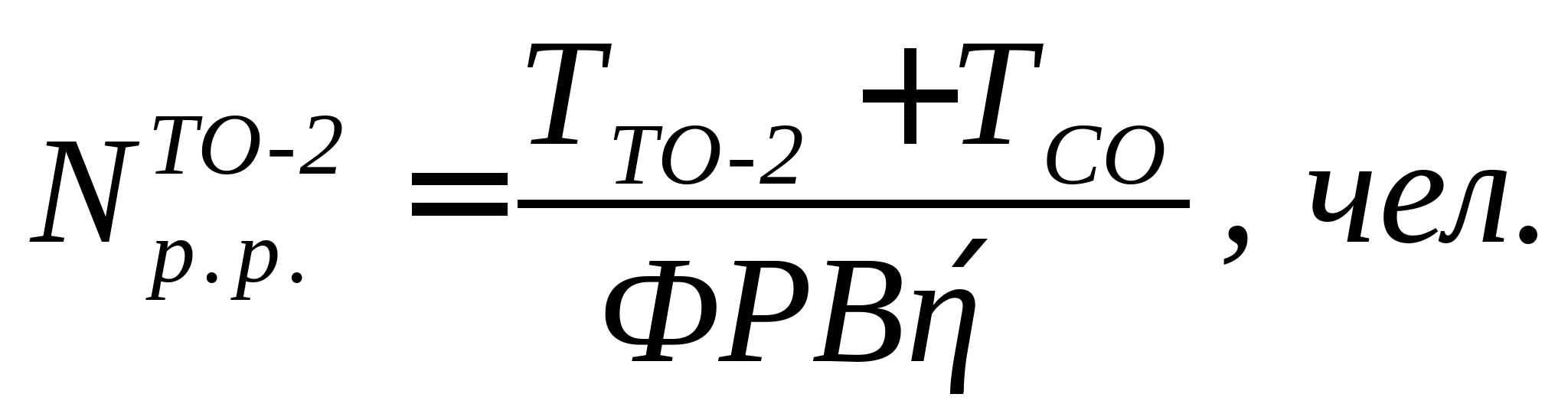 где tНТО-2 – норматив трудоемкости одного обслуживания, чел-ч [1, с.15, таб.2.2.]; Крез – результирующий коэффициент корректирования трудоемкости ТО [1, с. 28, п. 2.25.2].