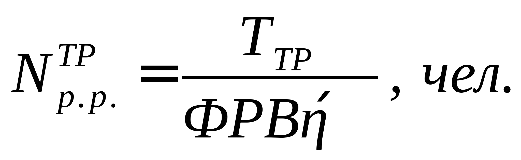 2.3. Расчёт численности ремонтных рабочих 2.3.1. Общая численность ремонтных рабочих где ФРВ – годовой фонд рабочего времени ремонтного рабочего, ч; η – коэффициент, учитывающий рост производительности труда ремонтных рабочих.