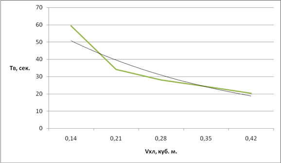 Для определения зависимости на графике строим точки средних арифметических улучшенных и соединяем их отрезками прямой. Каждая точка имеет координаты xи у. График №3 зависимости Тв от Vхл